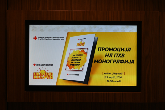 На 25 март се одржа промоцијата на монографијата „Три децении човечност“, дело на Љупчо Милковски, Весна Терзиоска, Илина Јакимовска и ПХВ координаторката Александра Ристовска, со поддршка од Националното друштво, ПХВ инструкторите и Меѓународниот комитет на Црвениот крст – канцеларија во Белград.