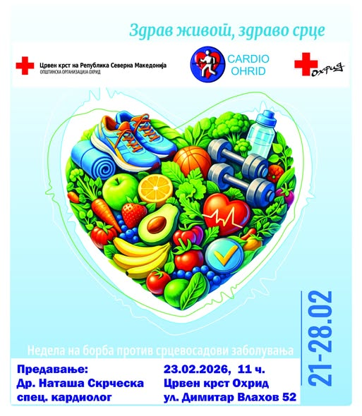 Во рамки на своите здравствено-превентивни активности, а како дел од одбележување на Неделата на срцево-садови заболувања (21-28 февруари), Црвен крст Охрид, под мотото „ЗДРАВ ЖИВОТ, ЗДРАВО СРЦЕ“ организира низа активности насочени кон превенција и заштита од срцево-садовите заболувања.