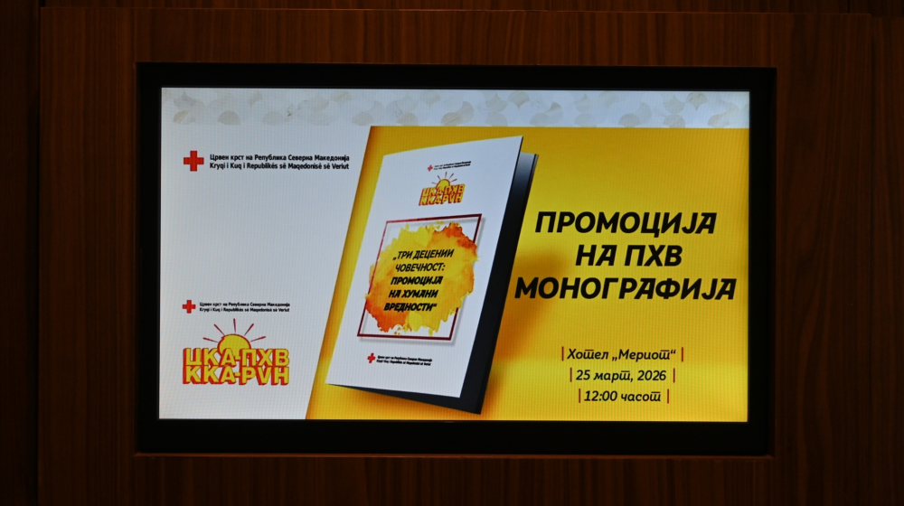 На 25 март се одржа промоцијата на монографијата „Три децении човечност“, дело на Љупчо Милковски, Весна Терзиоска, Илина Јакимовска и ПХВ координаторката Александра Ристовска, со поддршка од Националното друштво, ПХВ инструкторите и Меѓународниот комитет на Црвениот крст – канцеларија во Белград.