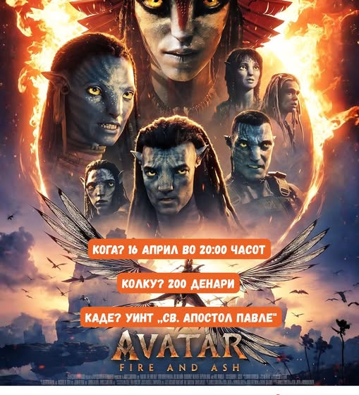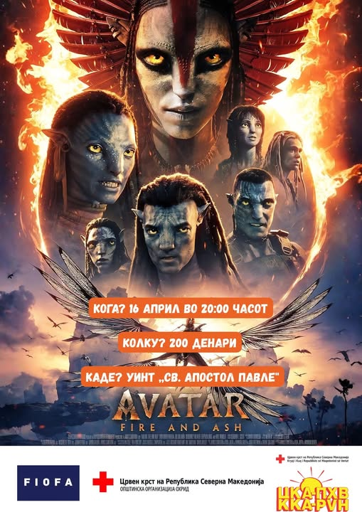 Утре, во Универзитетoт за информатички науки и технологија “Св. Апостол Павле”, со почеток од 20:00ч, една од овогодинашните ПХВ која работи на социјален проект со цел реновирање на просториите на Здружението од родители со деца со посебни потреби “Тајните на моето срце” – Охрид, организираат хуманитарно прикажување на филмот: “Avatar: Fire and Ash”.