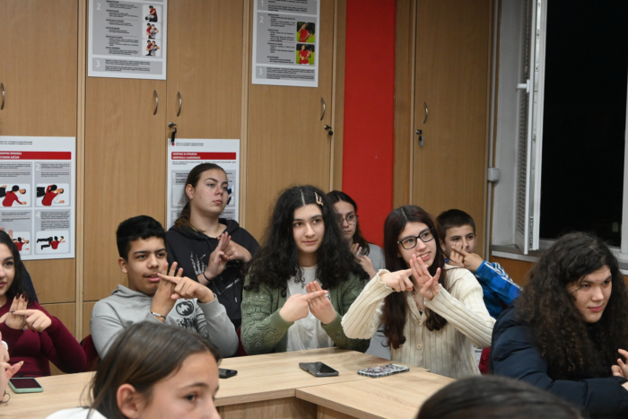 Присутните волонтери, преку интерактивни вежби, практични активности и едукативни игри, имаа можност да ја научат дворачната азбука на македонскиот знаковен јазик, но и да се запознаат со основните принципи на невербалната комуникација.
