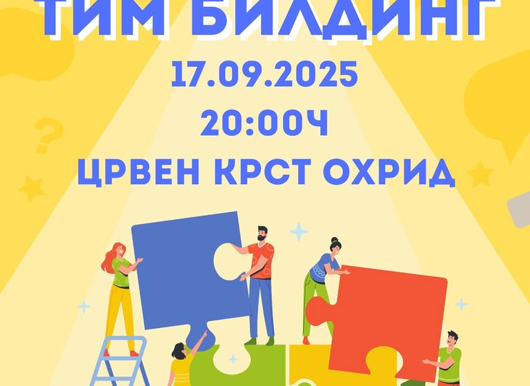 Клубот на млади при Црвен крст Охрид ве поканува на “Тим Билдинг работилница”, која ќе се одржи на 17.09.2025 (среда), со почеток од 20:00ч во просториите на Црвен крст Охрид.